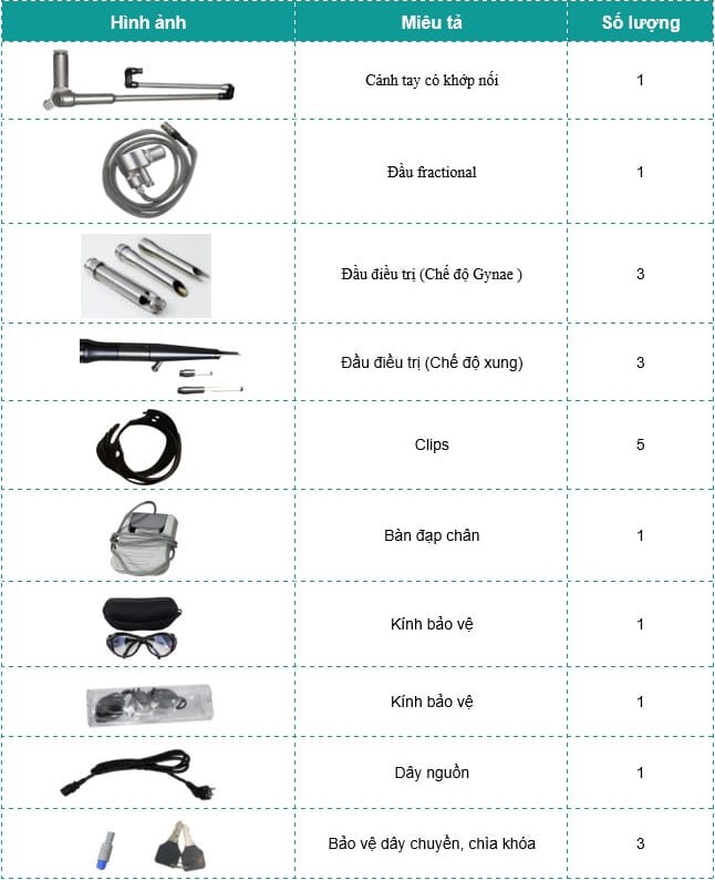 - Đầu điều trị se khít âm đạo 45° và 360° chuyên nghiệp.