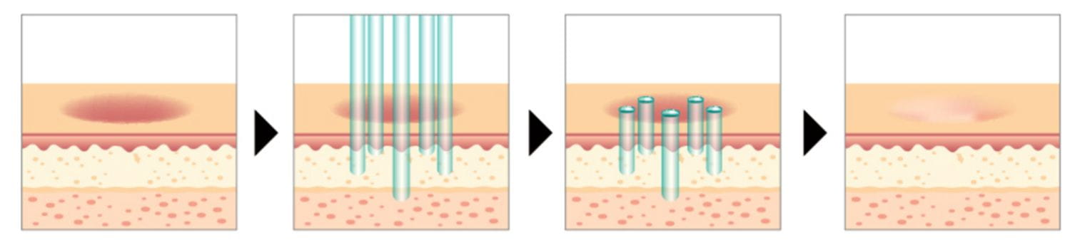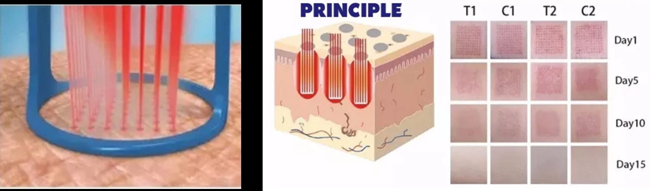 Các vi cột nhiệt này xử lý lớp hạ bì một cách bề ngoài cũng như chiều sâu, chạm đến các lớp bên dưới của lớp hạ bì và kích thích hình thành collagen. Ngoài ra, cơ chế này cho phép điều trị cá nhân hóa, điều chỉnh chúng theo nhu cầu của từng bệnh nhân.