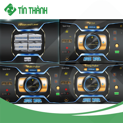 Giao diện hoạt động bốn chế độ: Giao diện hoạt động bốn chế độ độc đáo trên thế giới với chế độ xung ngắn (picosecond), chế độ xung dài (long pulse), chế độ xung kép (PTP), chế độ đa xung (multi pulse) đáp ứng đầy đủ nhu cầu điều trị khác nhau.