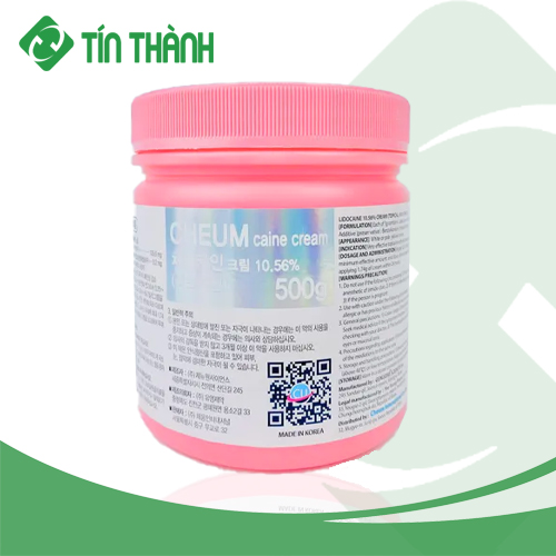 Kem được đựng trong hộp màu hồng với trọng lượng 500gr. Thành phần chính của kem ủ tê Cheum Caine Cream gồm có 10.56% Lidocane và 2% Benzalkonium Chloride.